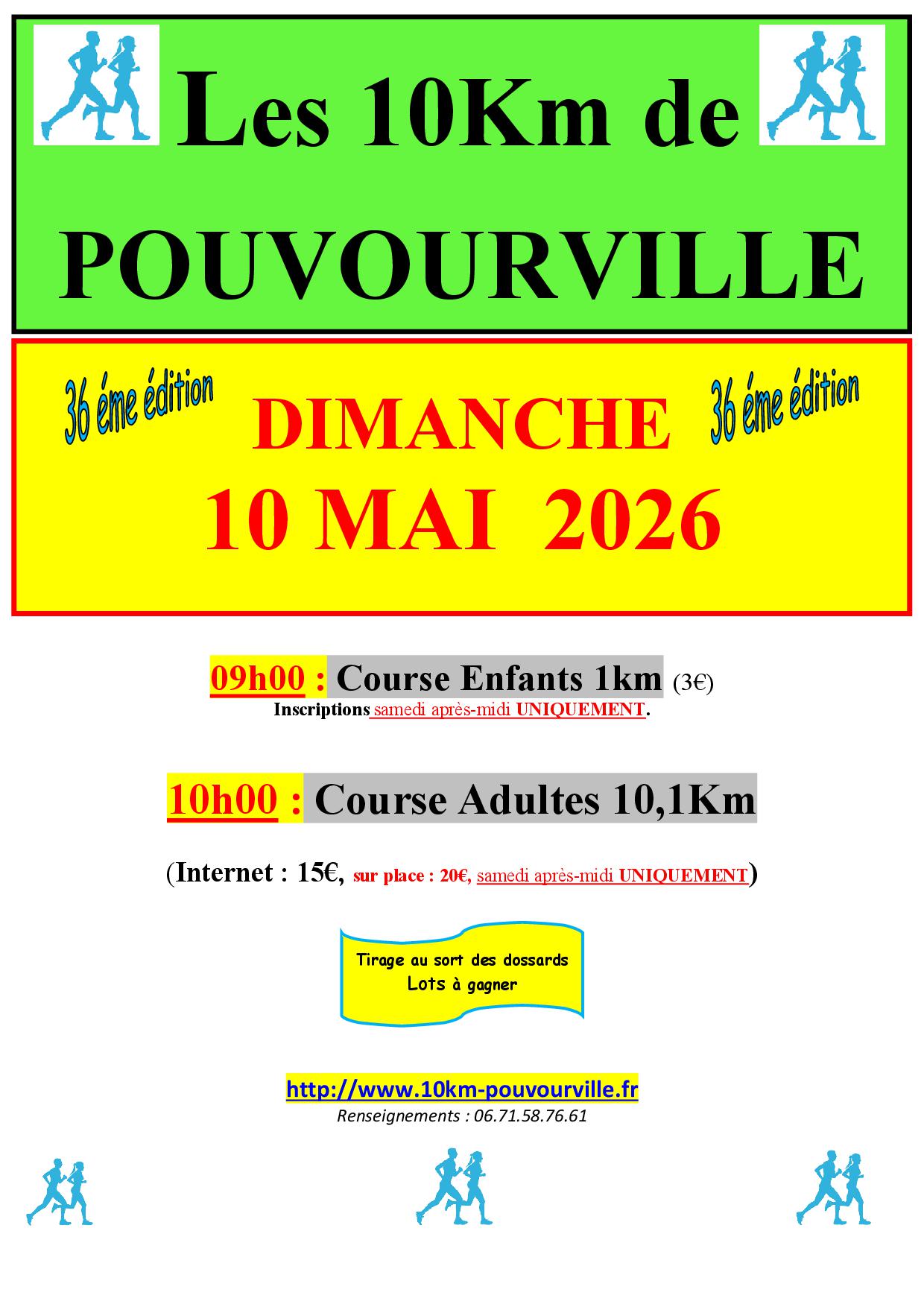 - 10h00 : Course Adultes 10,1Km (Internet : 15€, sur place le samedi après-midi : 20€).