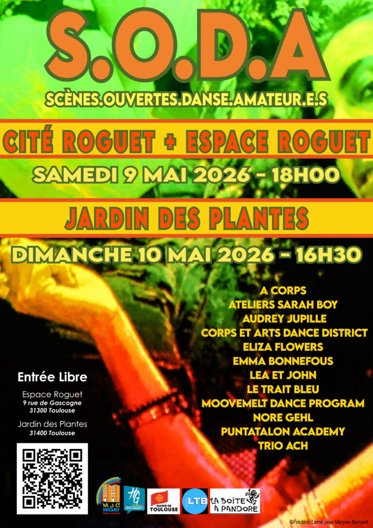 Pour cette huitième édition de SODA, La MJC ROGUET propose des Scènes Ouvertes destinées à des Danseur.se.s Amateur.e.s issu.e.s d'horizons différents, hors les murs et sur le plateau de l'Espace Roguet le : Samedi 9 Mai 2026.